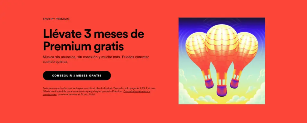 Spotify también utiliza estas páginas de aterrizaje para conseguir aumentar su tasa de conversión. En este caso, todo lo redirigen a intentar que nos hagamos una cuenta premium y lo hacen de una manera sencilla, directa y muy visual.