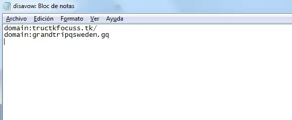 Guardamos el archivo en el formato por defecto .txt y vamos a disavow links tool una valiosa herramienta de Google.